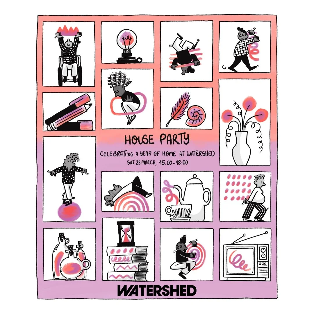 The illustration is now featured across the Watershed’s channels to invite their audience to the House Party, from their cinema screens to their social media.